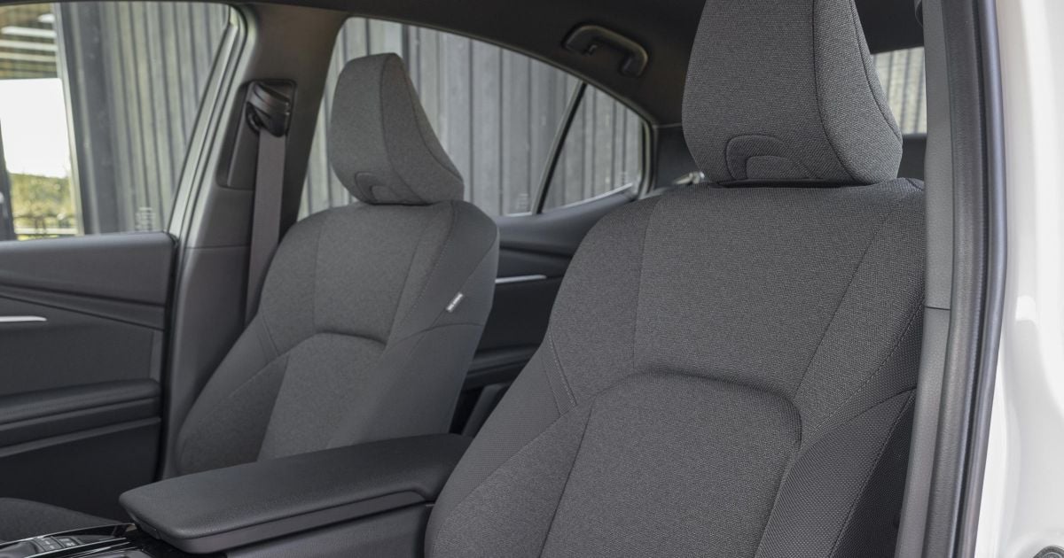 The striated gloss black trim across the dash, ostensibly to give the passenger air vent a ‘hidden’ appearance, is a bit awkward. The cloth trim across the dash and doors, however, is distinctive and handsome.